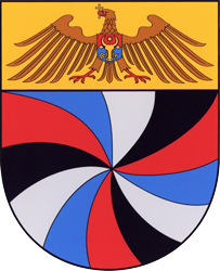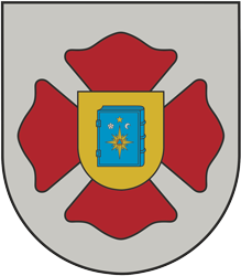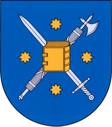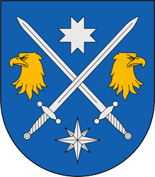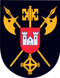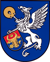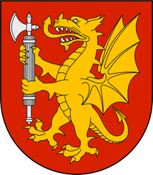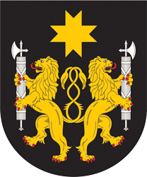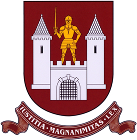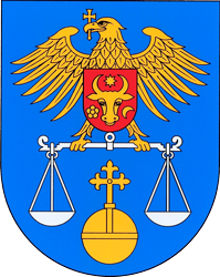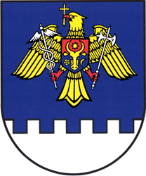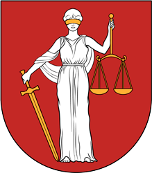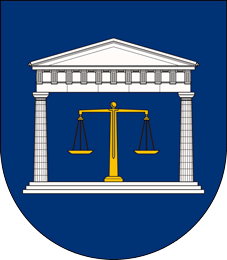 Геральдическое описание герба: В темно-красном поле стражник в полных золотых доспехах и в шлеме с опущенным забралом, держащий в правой руке поднятый в столб меч того же металла и стоящий за зубцами на боевом ходу серебряной крепости с двумя крытыми боковыми башнями и с входными воротами, закрытыми черной герсой. Девиз на темно-красной ленте серебряными прописными буквами: "IUSTITIA.MAGNANIMITAS.LEXХ" ("Справедливость. Великодушие. Закон").
