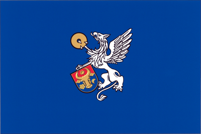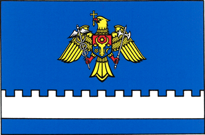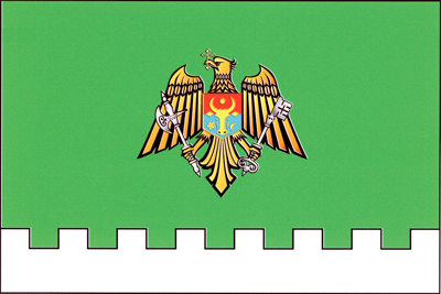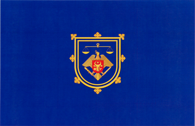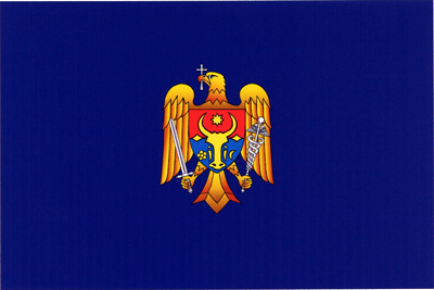 Флаг представляет собой синее прямоугольное полотнище (2:3), в середине которого белый грифон, держащий в правой лапе желтый диск с круглым отверстием, а левой - придерживающий наклоненный щит, обремененный малым гербом Республики Молдова.