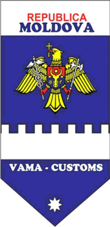 Геральдическое описание герба: В разделенном гонтовидно лазурью и серебром поле золотой орел с полураскрытыми крыльями и червлеными клювом и лапами, несущий в клюве золотой же крест, в правой лапе серебряный Меркуриев жезл, в левой - серебряную же двухчастную бирку (taille), а на груди щит, обремененный малым гербом Республики Молдова (в щите, пересеченном червленью и лазурью, наложенная голова тура прямо, сопровождаемая между рогами восьмилучевой звездой, справа - геральдической розой и слева - убывающим полумесяцем, все золотое)