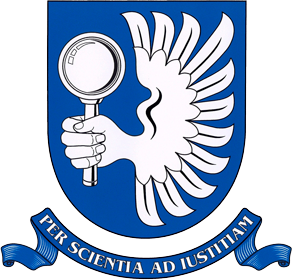 Геральдическое описание герба: В черном поле золотой пониженный появляющийся лев (lion naissant) с червлеными языком и когтями, держащий в передней правой лапе лупу того же металла, а в левой - зажженную червленью золотую же военную гранату.