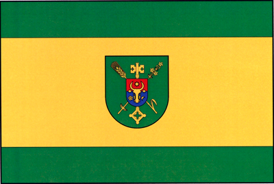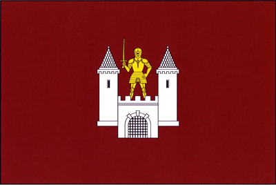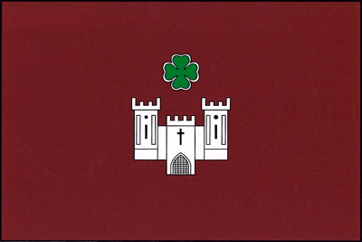 Флаг представляет собой прямоугольное темно-красное полотнище (2:3), в середине которого белая крепость с тремя башнями и закрытыми герсой воротами центральной башни, сопровождаемая сверху зеленым окаймленным белым четырехпластинчатым листом клевера без черенка.