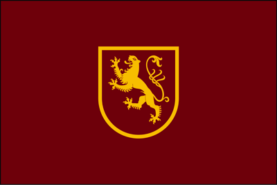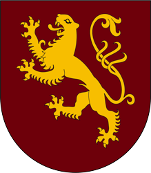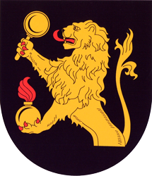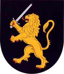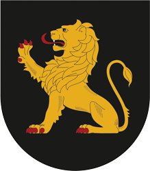 Геральдическое описание герба: В черном поле восстающий золотой лев с червлеными языком и когтями, несущий в правой передней лапе серебряный меч в перевязь слева.