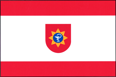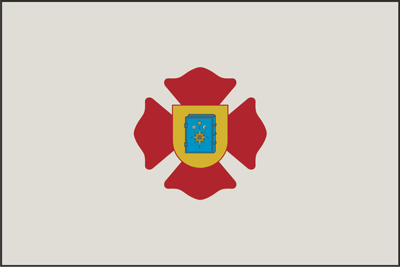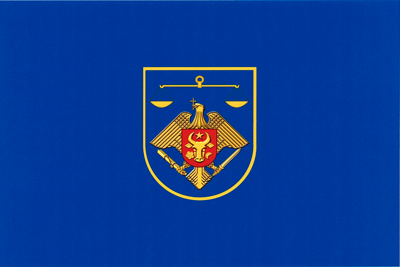 Флаг представляет собой красное прямоугольное полотнище (2:3) с широким белым поясом (3/5 h), в середине которого геральдический щит прямоугольной формы с закругленной оконечностью (2/5 h), обремененный гербом Национального инспектората общественной безопасности (в черном поле два восстающих расходящихся желтых льва с переплетенными хвостами, красными языками и когтями, несущие каждый в передних лапах белые фасции в столб, все сопровождаемое сверху желтым восьмишпильным крестом).