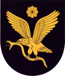 Эмблема представляет собой стоящего в профиль вправо золотого орлана-белохвоста (Haliaeetus albicilla) с полураскрытыми крыльями, с серебряными грудью и хвостом.