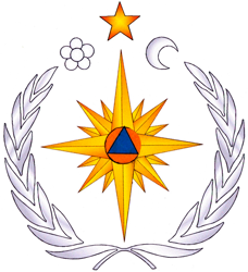 Большая эмблема представляет собой золотую 16-лучевую розу ветров: несущую в середине международный символ гражданской защиты (лазуревый равносторонний треугольник острием вверх, вписанный в оранжевый круг), окруженную двумя серебряными оливковыми ветвями и сопровождаемую сверху золотой пятилучевой звездой, серебряной геральдической розой и серебряным же убывающим полумесяцем, в обратном порядке.