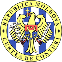 Эмблема "Орел Счетной палаты" представляет собой золотого орла с полураскрытыми крыльями и червлеными клювом и лапами, несущего в клюве золотой же крест: в правей лапе серебряный Меркуриев жезл, в левой - серебряную же двухчастную бирку, а на груди щит, обремененный малым гербом Республики Молдова (в щите, пересеченном червленью и лазурью, наложенная голова тура прямо, сопровождаемая между рогами восьмилучевой звездой, справа - геральдической розой и слева - убывающим полумесяцем, все золотое).